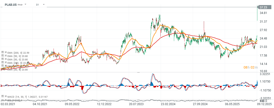 Las acciones de Photronics subieron hasta 50% el miércoles, marcando su mayor alza intradía desde marzo de 2009, después de que la empresa de semiconductores presentara una previsión de ingresos para el primer trimestre por encima del consenso. Photronics es uno de los mayores productores mundiales de fotomáscaras, un componente esencial en la infraestructura de fabricación de chips.
