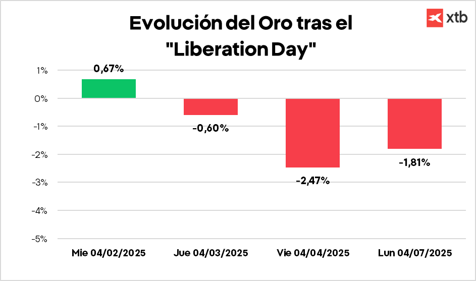 - Tras el “Liberation Day”, el movimiento fue casi opuesto: un pequeño repunte seguido de descensos continuados, señal de que el mercado interpretó el evento como una reducción del riesgo.
