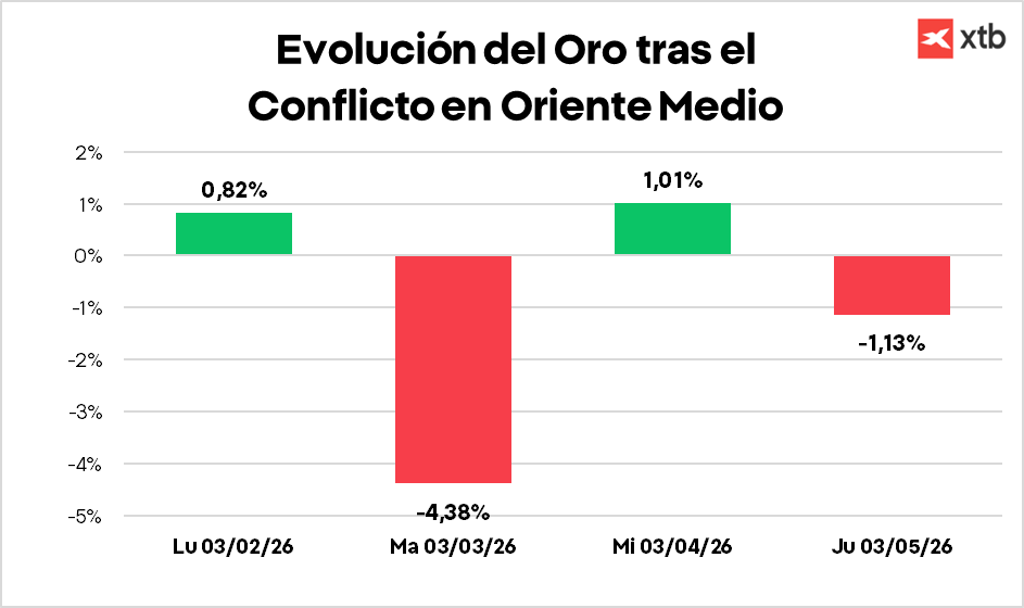 Si miramos hacia atrás y comparamos cómo se comportó el oro durante los primeros cuatro días tras el estallido de distintos conflictos geopolíticos de alcance global, vemos que el patrón no es uniforme. Cada episodio muestra una reacción distinta, lo que evidencia que el oro no responde siempre de la misma manera ante un shock internacional.