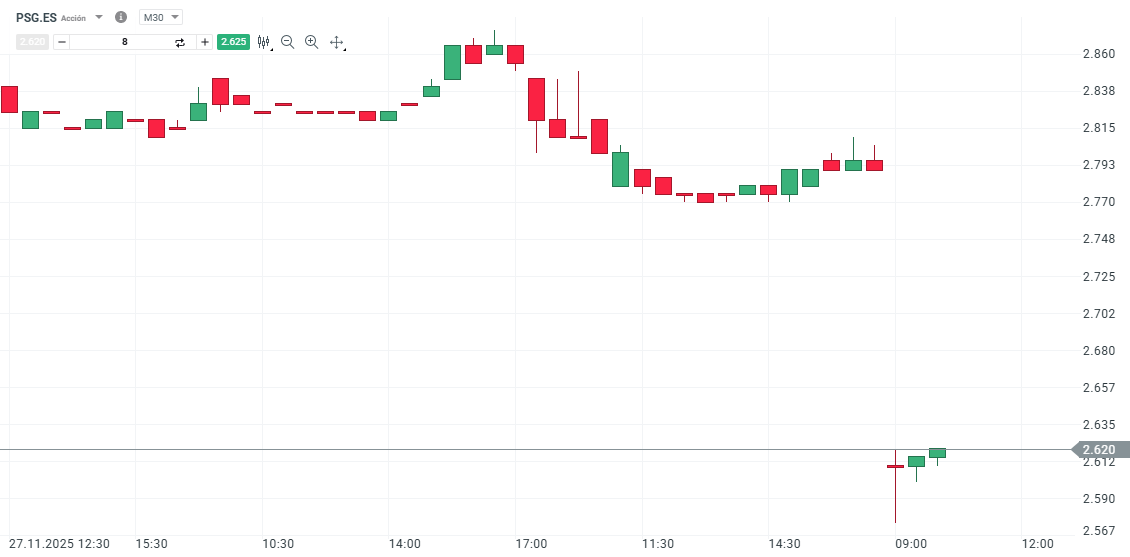 Las acciones de Prosegur retroceden un 6,5% intradía en su fecha exdividendo, mientras que en el conjunto del 2025 ofrece una revalorización del 54%.