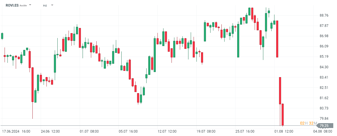 Las acciones de Rovi (ROVI.ES) se están desplomando un 6% en lo que llevamos de sesión y está liderando las bajadas del Ibex35. Sin embargo, la empresa ya reportó sus resultados financieros (malos) y aparentemente hoy no hay noticias relevantes. Entonces, ¿por qué cae?