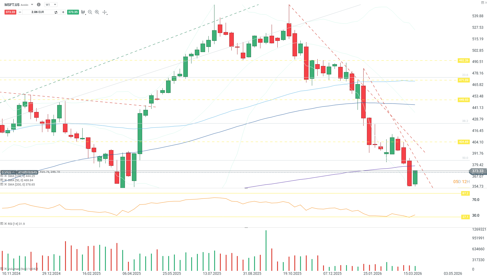 La compañía vive uno de los momentos más delicados de los últimos años. La tendencia bajista comenzó tras marcar máximos en octubre de 2025 y, desde entonces, Microsoft ha encadenado catalizadores negativos externos y noticias internas que han impedido recuperar la senda alcista.