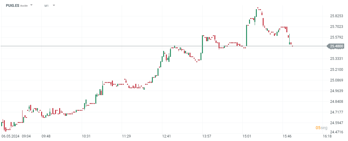 Puig subió con fuerza nada más salir a bolsa el pasado viernes. Sin embargo, se quedó sin fuelle a lo largo de la sesión y acabó el día al mismo precio al que había salido a cotizar. Hoy ha comenzado igual, pero parece que los inversores están más animados.
