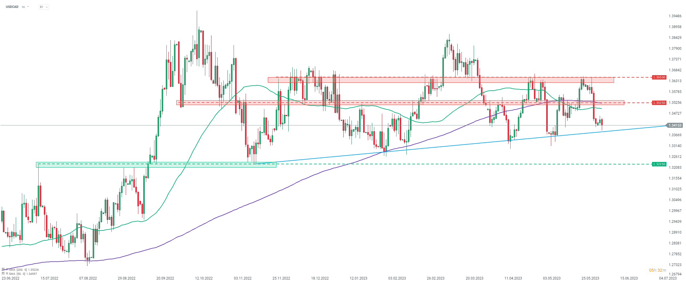 USDCAD, intervalo D1. Fuente: xStation5