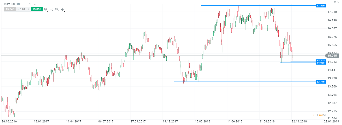 Desde el punto de vista técnico, la petroelra consigue salvar la directriz alcista de largo plazo que parte de mínimos del ejercicio 2016 aunque no es capaz de recuperar la zona de resistencia intermedia comprendida entre 16,15 euros. Por lo que mientras no perfore el nivel de soporte de este año en 14,70 continuariamos con la tendenica alcista, en el caso de perforarlo nos encontrariamos con una pérdida importante, y por tanto con un precio objetivo en 13,80€.