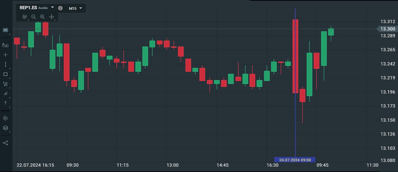 Apertura con volatilidad de Repsol. Actualmente sube un 0,33%
