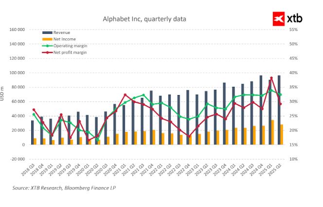 Alphabet publicará sus resultados del tercer trimestre de 2025 tras el cierre del mercado. ¿Qué podemos esperar del gigante tecnológico? ¿Continuará el auge impulsado por la IA? El informe de hoy será una de las pruebas más importantes para el mercado, pues mostrará si las inversiones récord de Alphabet en inteligencia artificial y Google Cloud se traducen en un crecimiento real de ingresos y beneficios. Tras los resultados mixtos de Tesla, los inversores estarán muy atentos para ver si Alphabet puede confirmar la solidez de la tendencia de la IA y mantener su posición como líder tecnológico.