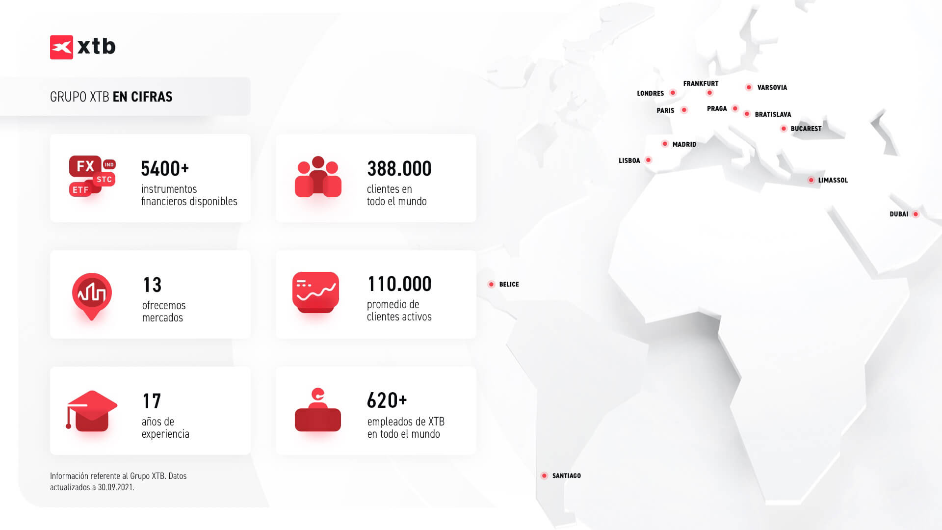 Podrás encontrar más información resumiendo las actividades del Grupo XTB durante el tercer trimestre de 2021 en el Informe Actual Número 16/2021 - “Resultados financieros y operativos preliminares del Tercer trimestre de 2021”, que puedes descargar descargar aquí.
