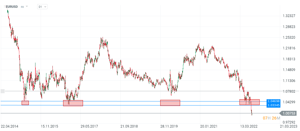 Gráfico EUR/USD con pérdida de soporte. Fuente: Xstation5