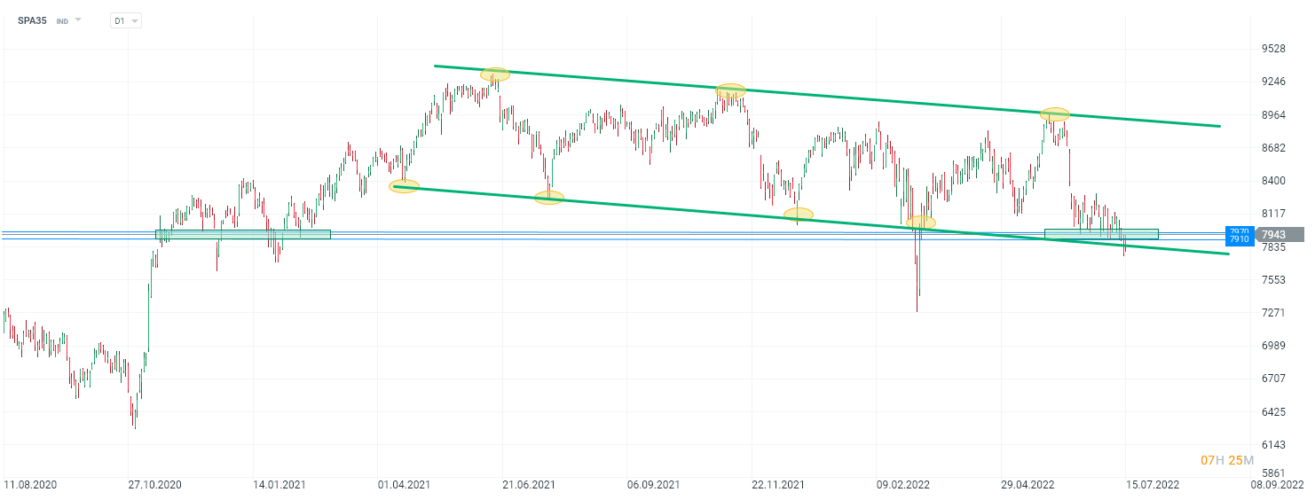 Gráfico Ibex35 perdiendo los 8.000 puntos. Fuente: Xstation5