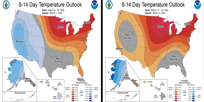 - Esta se produjo a pesar de los nuevos pronósticos meteorológicos que apuntaban a temperaturas superiores al promedio en una mayor parte del territorio continental de EE. UU. que los pronósticos previos al fin de semana.