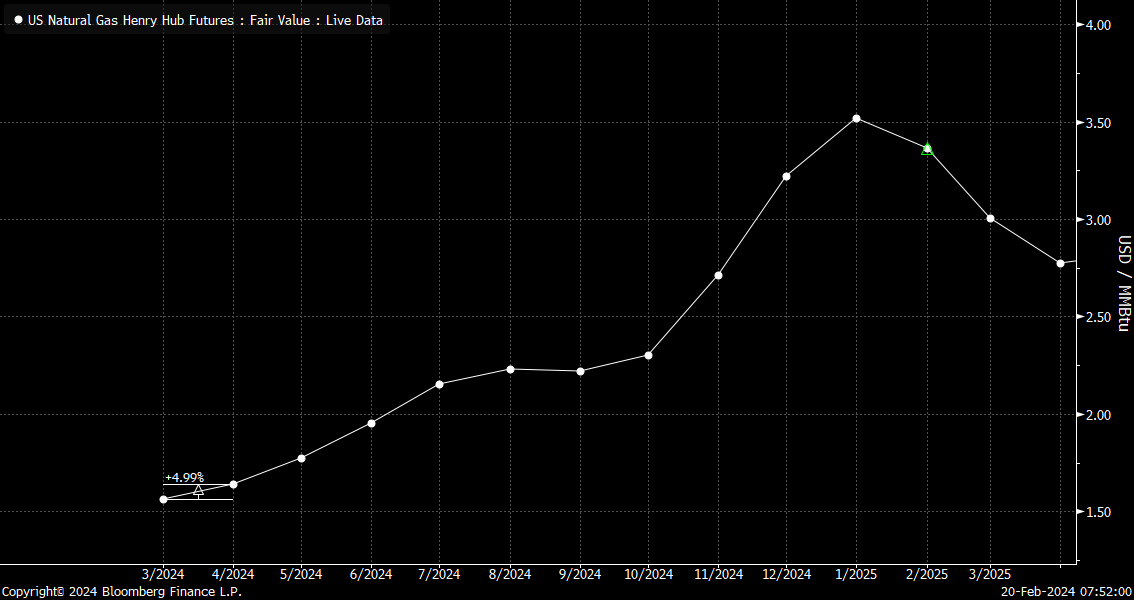La renovación del gas natural elevará los precios aproximadamente un 5%. Ya se observa un claro contango en la curva de futuros hasta agosto. Fuente: Bloomberg Finance LP, XTB Research