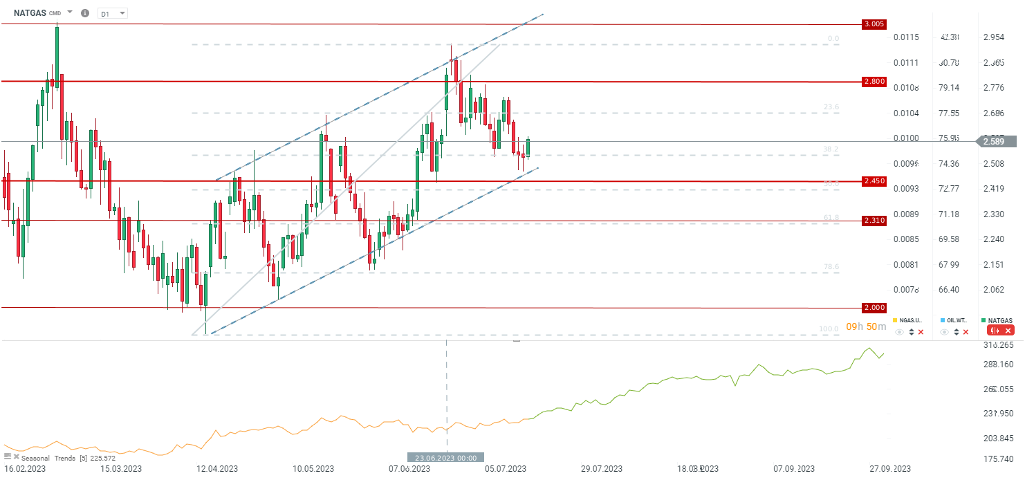 El precio ha realizado ganancias en la apertura de esta semana, pero hoy los aumentos han continuado. La estacionalidad apunta a aumentos en las próximas semanas. Fuente: xStation5