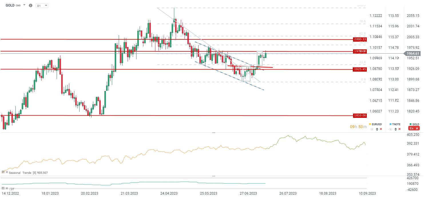 El precio del oro se ha dado cuenta de una formación de cabeza y hombros invertida, pero al mismo tiempo ha habido una clara señal de una reversión de la tendencia bajista reciente. Fuente: xStation5
