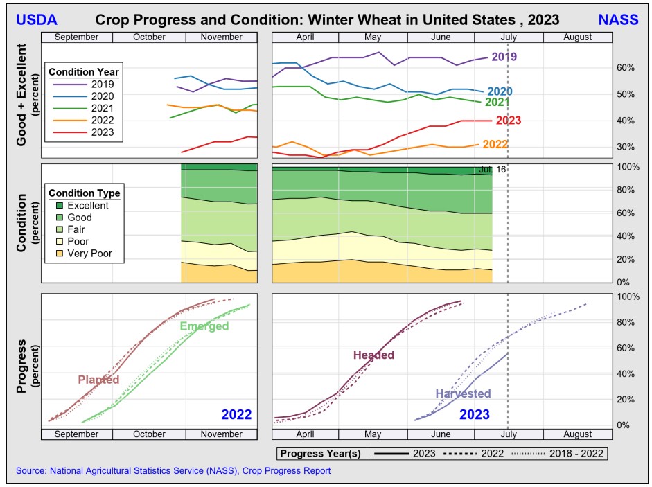 - Mientras tanto, en EE. UU. continúa la cosecha de trigo de invierno, pero al ritmo más lento desde la década de 1960. La calidad de la cosecha fue ligeramente superior a la del año pasado.