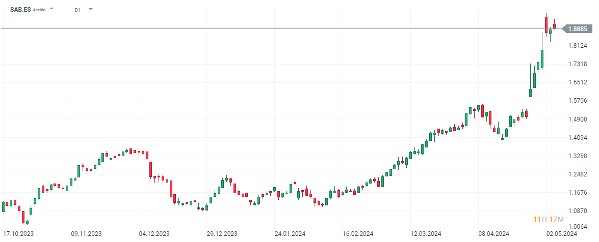 Las acciones de Banco Sabadell suben un 64% en lo que va de año