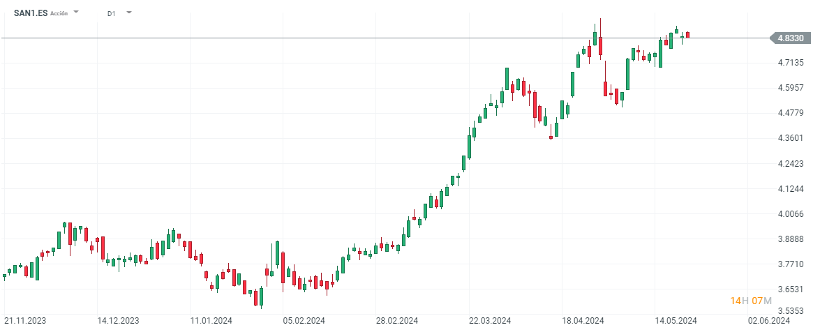Banco Santander (SAN1.ES) acumula una subida importante en el último año. Tanto, que con un +49% en bolsa en el último año está cerca de superar en capitalización bursátil a uno de los bancos más importantes de Europa y liderar el sector en el antiguo continente. De hecho, ayer lo hizo momentáneamente.