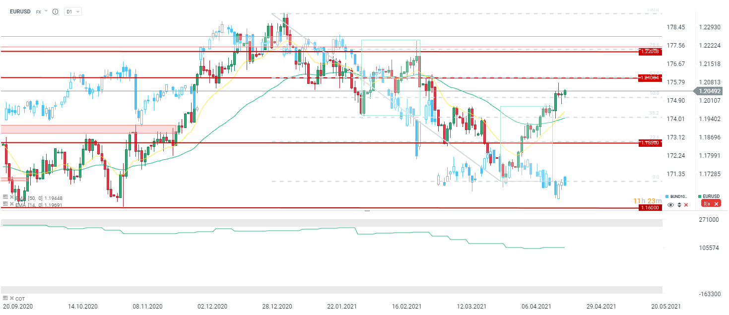 Los mercados esperan con impaciencia la decisión del BCE de hoy. No solo porque habrá dudas sobre si el BCE realmente aceleró el ritmo de compra de activos, como se señaló en la reunión anterior. Esta vez los inversores buscarán pistas sobre el tapering, como fue el caso del Banco de Canadá, que decidió reducir el volumen de compras semanales, principalmente por la alta inflación y mejores perspectivas económicas. ¿Han mejorado las perspectivas económicas en la zona del euro lo suficiente como para dar un paso hacia la normalización de la política monetaria? Más bien no, aunque, por supuesto, incluso la falta de medidas adicionales puede ser considerada positiva por los inversores así como positiva para el euro, lo que el BCE ciertamente no quiere en este momento.
