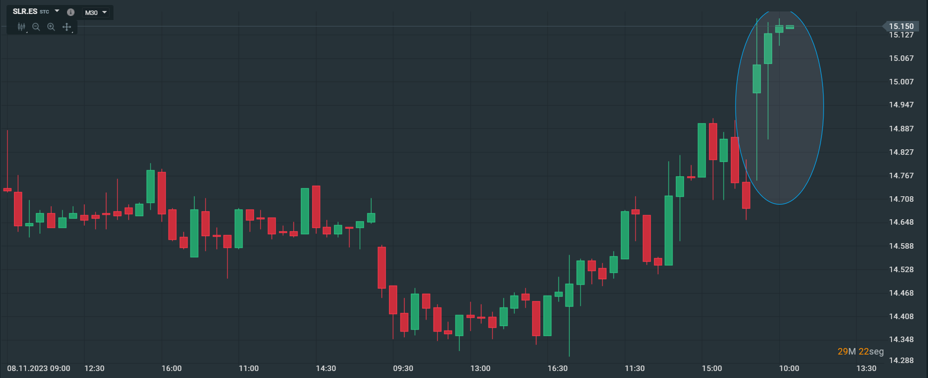 Gráfica con velas de 30 minutos.