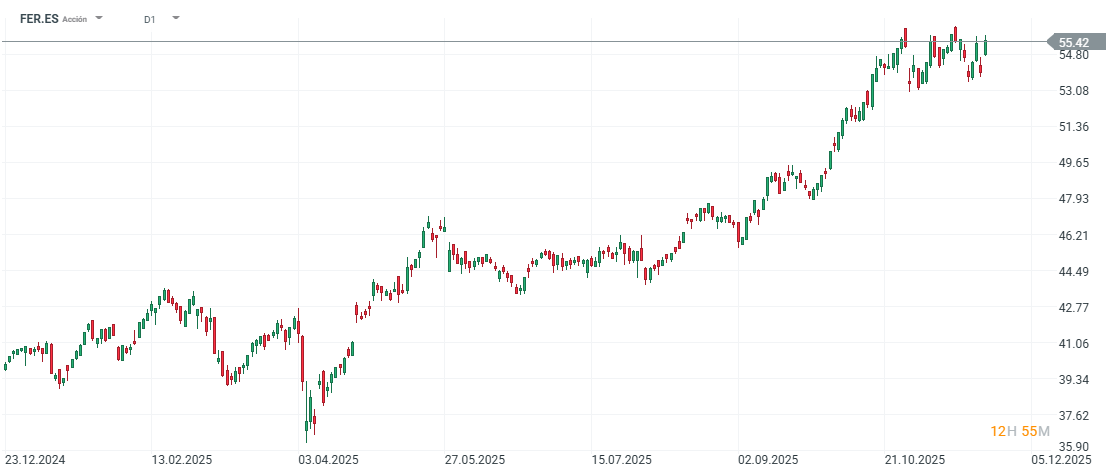 Las acciones de Ferrovial suben un 35% en este 2025.