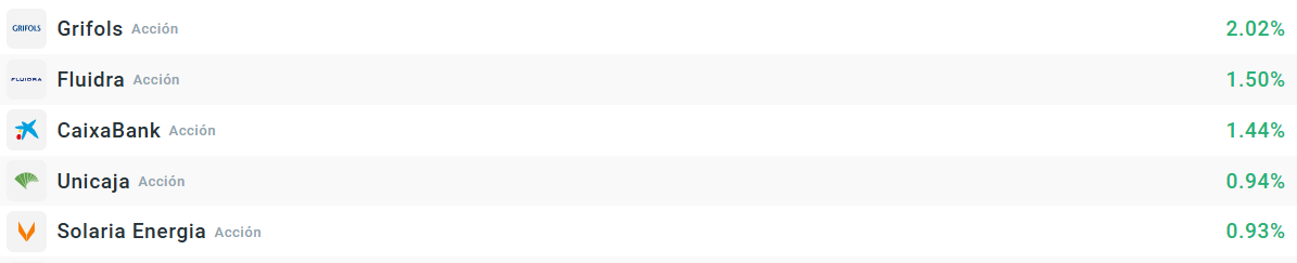 Las subidas del Ibex35 están lideradadas por las acciones Grifols. Como ya hemos mencionado, la farmacéutica reportará sus resultados trimestrales este jueves, algo alejados ya del asunto Gotham pero todavía con el proceso de OPA de Brookfield sin resolver. Le siguen las acciones de Fluidra, que continúa arrastrando los vientos a favor de sus resultados financieros, lanzados la semana pasada.
