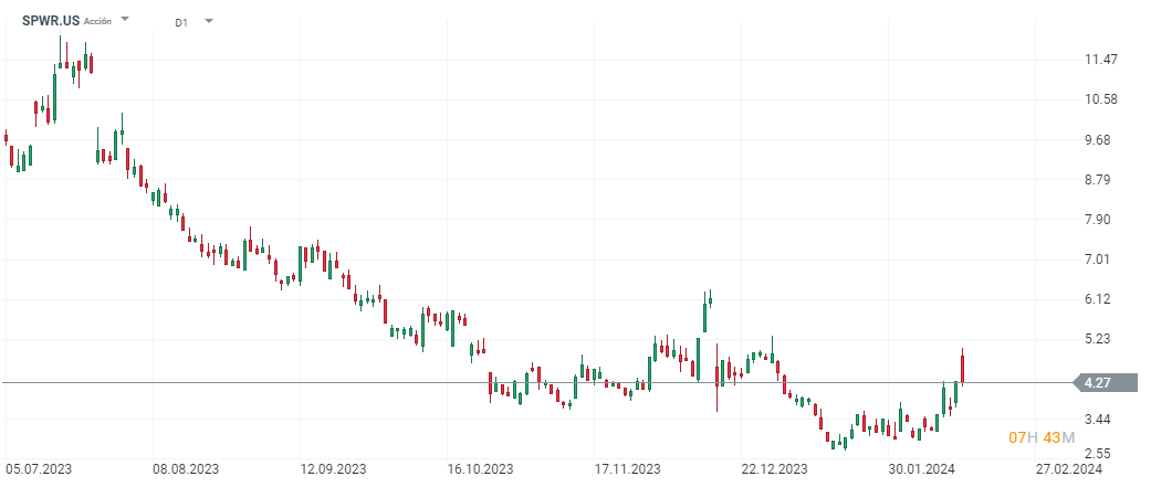 A pesar de no alcanzar las expectativas del mercado en los ingresos del cuarto trimestre debido a la débil demanda y la reticencia de los consumidores a invertir en energías limpias, las acciones de SunPower han iniciado la sesión con subidas vertiginosas que han ido poco a poco reduciendo, después de obtener 175 millones de dólares en nueva financiación de capital a través de Total Energies y Global Infrastructure Partners, accionistas mayoritarios de la firma.