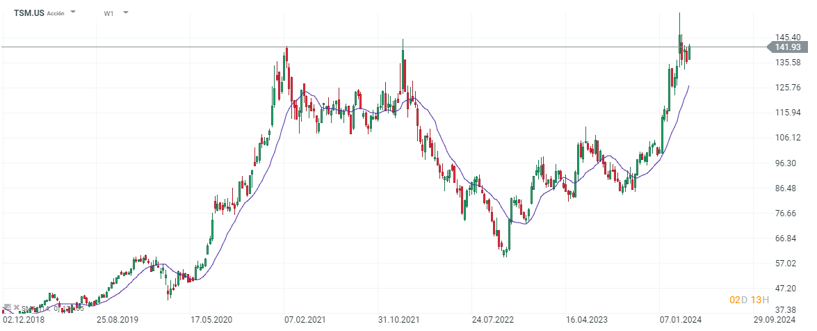 Las acciones de TSMC suben más de un 30% en lo que va de año.