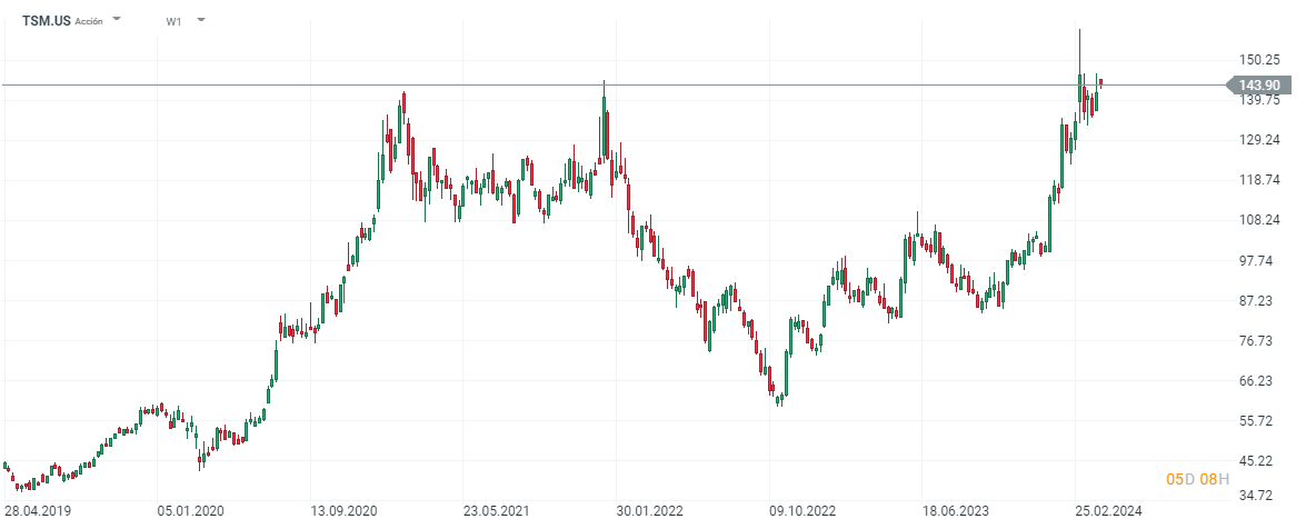 Taiwan Semiconductor (TSM.US) se beneficiará de la Ley de Chips de Estados Unidos con un total de 11.600 millones de dólares para completar las tres fábricas de Arizona. El importe total de la inversión será de unos 65.000 millones de dólares, un salto importante de los 40.000 millones de euros que se preveían en un inicio.