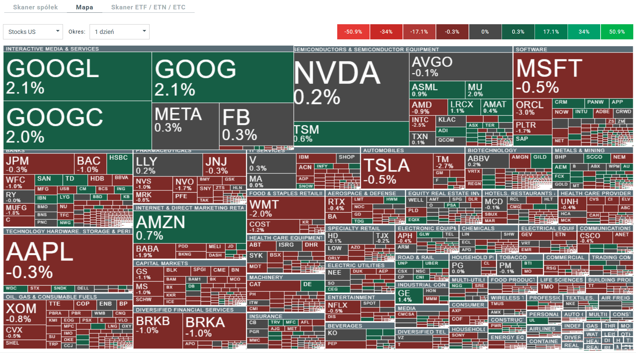 Volatilidad actual entre las empresas en Wall Street. Fuente: xStation5