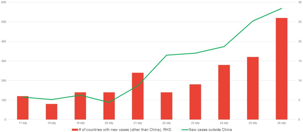 Los mercados permanecen en crisis porque la propagación del virus no deja espacio para respirar a los alcistas. En nuestro informe especial publicado ayer, destacamos que los inversores ahora se centrarán en nuevos casos fuera de China y el número sigue creciendo. Solo ayer hubo un récord de 569 casos nuevos confirmados en 26 países récord (de nuevo, sin incluir a China), pero estos récords se romperán. Ya conocemos unos 505 casos nuevos en Corea, 35 en Japón (donde se cerrarán las escuelas), 17 en Kuwait y 10 en Alemania hoy. Tal flujo de noticias hace descartar cualquier intento de recuperación: el US100 se mantiene justo por encima del soporte crítico 8700.