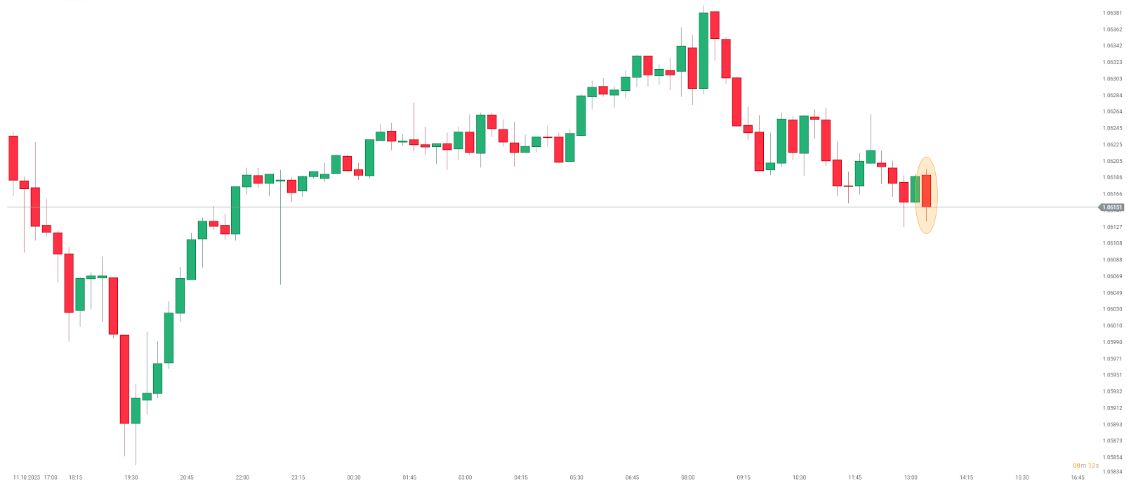 El EUR/USD bajó tras la publicación de las actas del BCE, pero la escala del movimiento no superó el 0,1%. Fuente: xStation5
