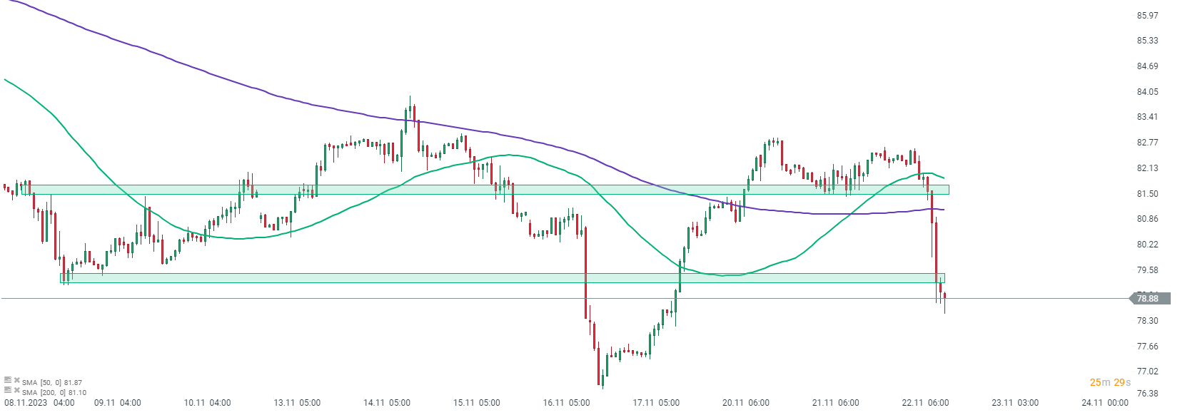 OIL mantiene las bajas sufridas de hoy después de que el informe de la EIA confirmara la lectura API de ayer. Fuente: xStation5