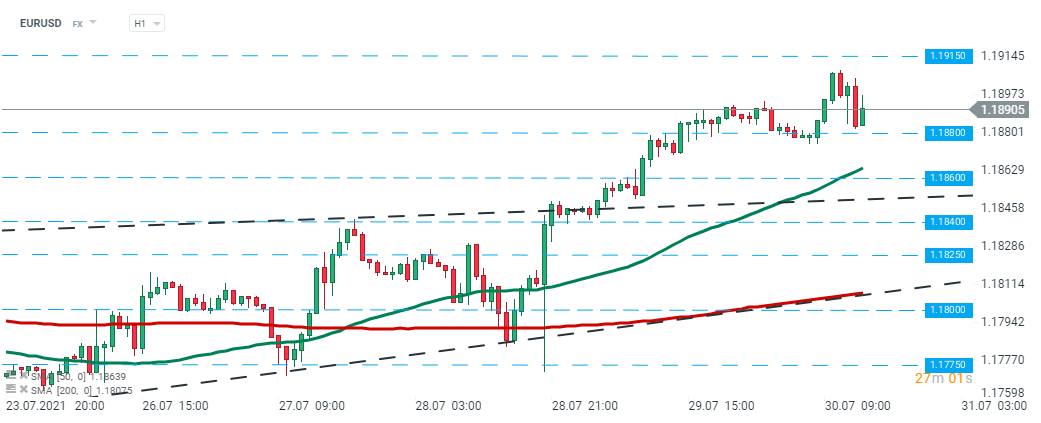 El EURUSD experimentó una reacción relativamente pequeña a la publicación de datos de hoy. El par de divisas más popular continuó cotizando alrededor del nivel de 1,1890. Fuente: xStation5