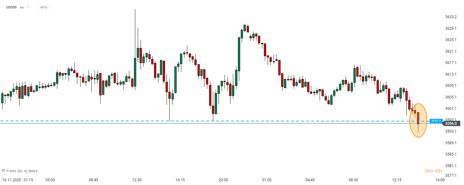 El EURUSD se movió ligeramente al alza en el movimiento instintivo antes de caer un poco. El rango de movimientos no superó el 0,1%. Se podría haber observado una reacción más grande en los índices bursátiles, pero incluso en este caso, la caída en US500 no fue mayor al 0.2%.