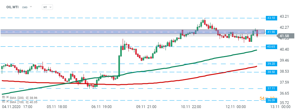 Petróleo crudo WTI (OIL.WTI): el precio rompió por debajo del nivel de $ 41,90 después de la publicación del informe de la EIA de hoy y se dirige hacia el siguiente nivel de soporte en $ 40,65. Fuente: xStation5Un año de Trump: la IA y las grandes tecnológicas impulsan el rally bursátil
