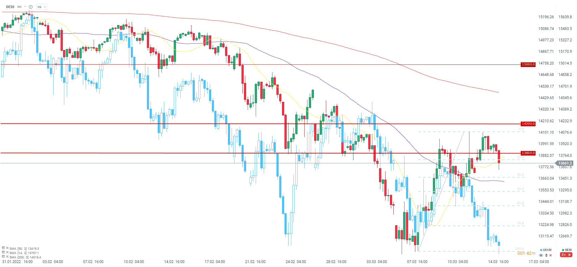 El índice ZEW cae a -39,3 con la expectativa de una publicación de 10,5, y el nivel anterior de 54,3 puntos. Por supuesto, una publicación tan desastrosa es el resultado de la guerra en Ucrania. Una publicación tan baja tuvo lugar en marzo de 2020, cuando las acciones estaban perdiendo mucho debido a los bloqueos globales de covid.