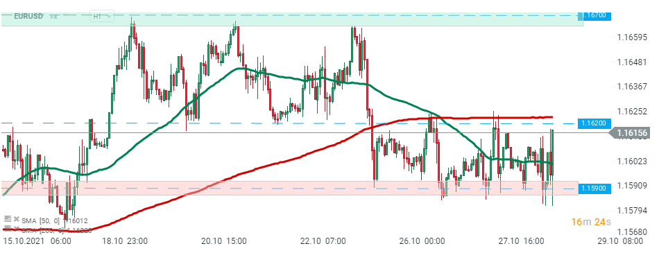El par EURUSD subió después de la publicación de los datos de hoy y está probando resistencia en el nivel de 1,1620. Fuente: xStation5
