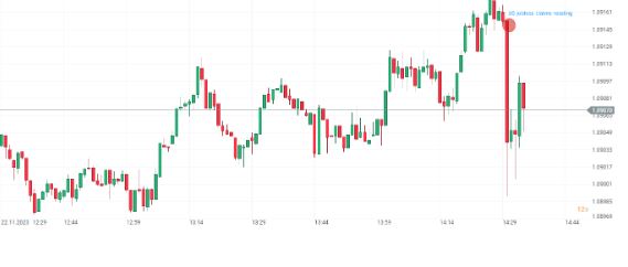 Una lectura mucho más fuerte de lo esperado del mercado laboral estadounidense indicó que es posible que la Fed no reduzca las tasas tan rápido como espera el mercado en 2024, lo que fortaleció el dólar estadounidense y debilitó al euro. Al mismo tiempo, la revisión de los pedidos de bienes duraderos de EE.UU. fue más débil de lo esperado, lo que hace que las lecturas macroeconómicas de hoy en EE.UU. sean bastante variadas.