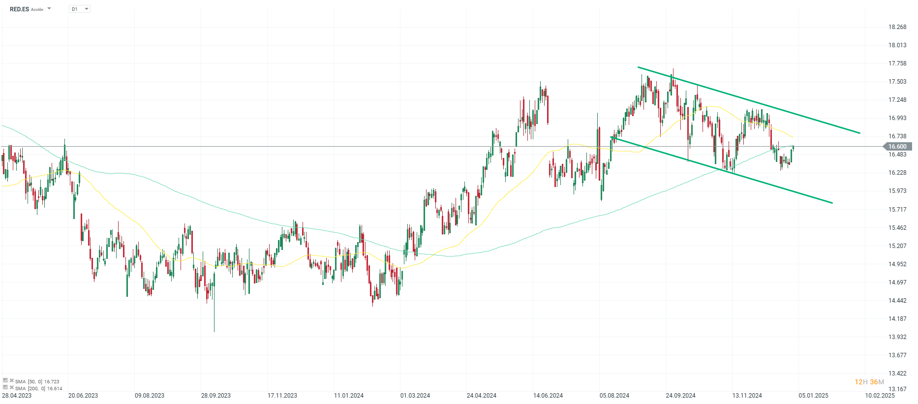 A nivel técnico encontramos la cotización de Redeia en un canal bajista de mínimos y máximos decrecientes. La ruptura al alza de la media móvil por encima de los 16,5 euros puede ser una señal muy positiva que sirva como aliciente posterior a romper la parte alta del canal y que permita a la compañía mirar cotas cercanas a los 18 euros.