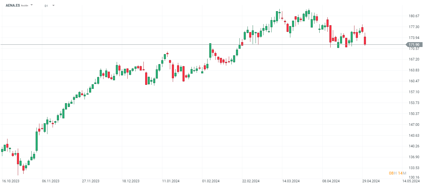 Las acciones de Aena suben más de un 4% en lo que va de 2024.