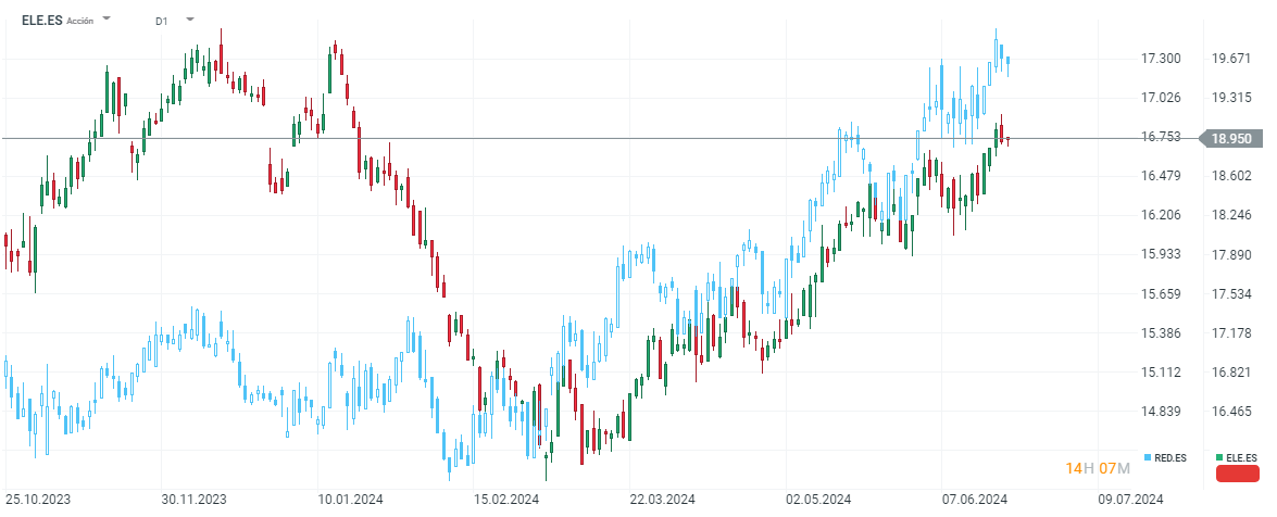 Las acciones de Endesa suben un 2% en este 2024, mientras que Redeia sube un 15%.