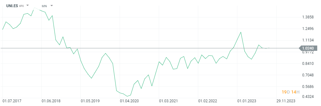 La empresa acumula un rendimiento muy pobre en lo que va de año, prácticamente plana, a diferencia del resto del sector. Sin embargo, hay que recordar que el año pasado aumuló un buen rally alcista cuando la acción se incluyó en el selectivo español de referencia, el IBEX 35.