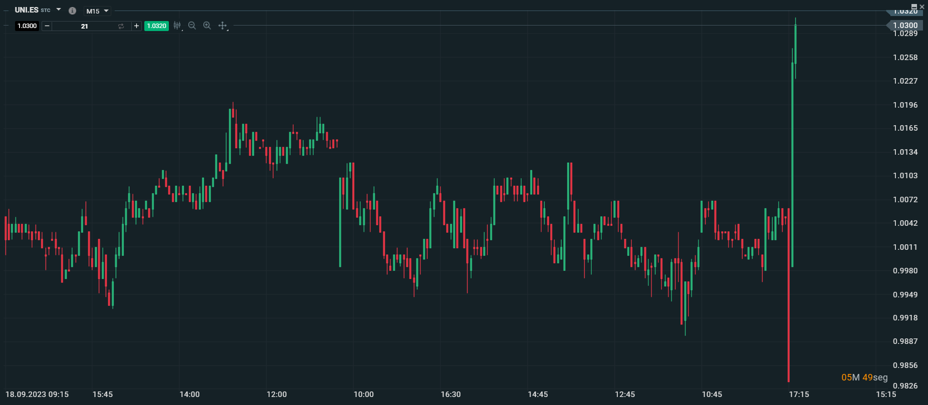Unicaja Banco tras la noticia y la apertura de la sesión. Fuente: xStation
