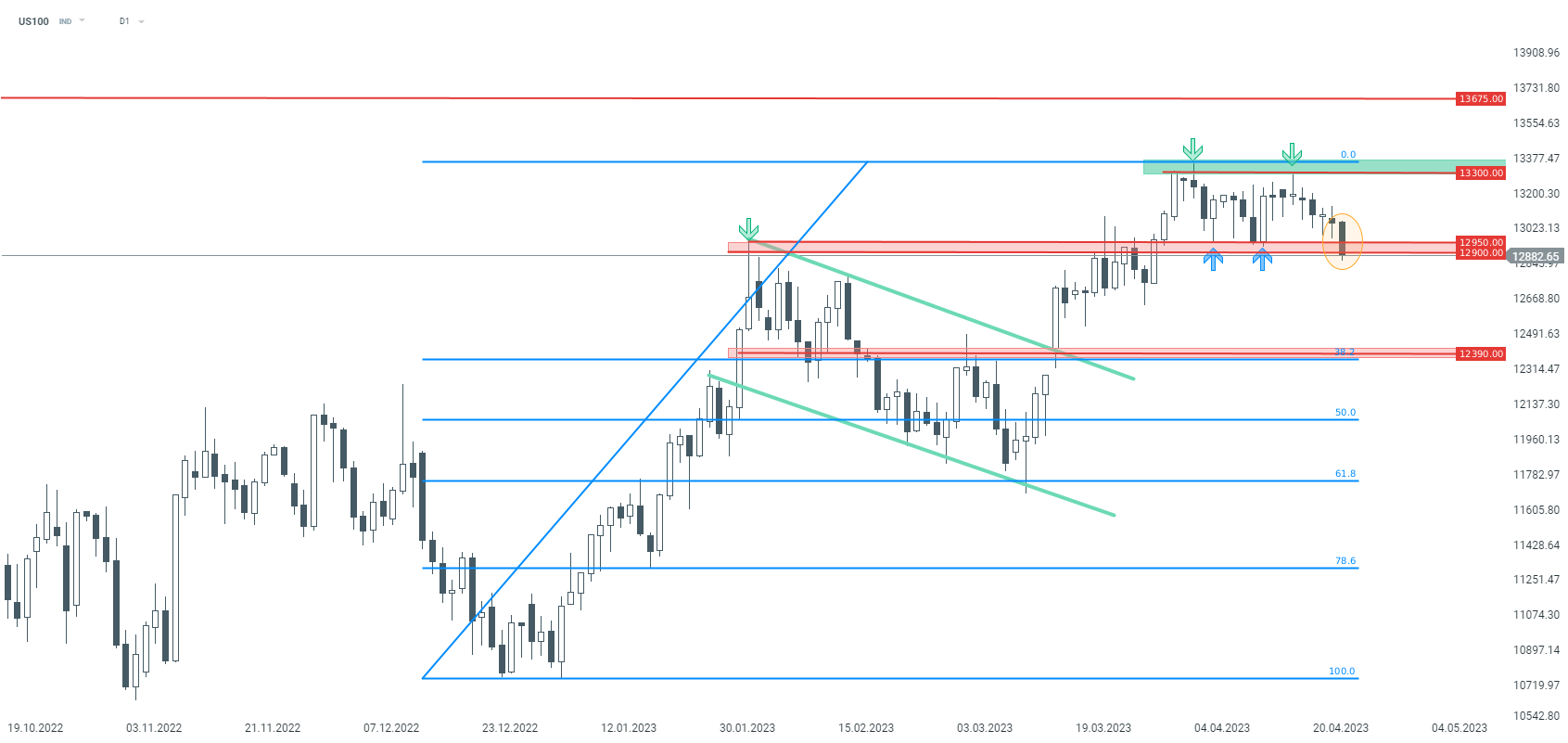 Echando un vistazo técnico a US100 en el intervalo D1, podemos ver que el índice ha estado operando en un rango recientemente con un soporte de 12,900 pts como límite inferior y una resistencia de 13,300 pts como límite superior. Si vemos una ruptura por debajo del límite inferior, la liquidación puede profundizarse y potencialmente extenderse hacia el próximo soporte importante en el área de 12,390 pts, marcada con reacciones de precios anteriores y un retroceso del 38.2%. Por otro lado, si los alcistas recuperan fuerza y defienden el área de 12,900 pts, un movimiento de recuperación hacia el límite superior del rango en 13,300 pts puede estar en las cartas.