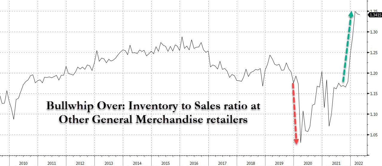 El aumento de los inventarios entre los minoristas puede conducir a una reducción significativa de los márgenes. Fuente: Bloomberg, Zero Hedge