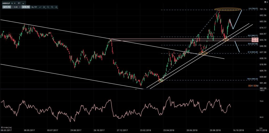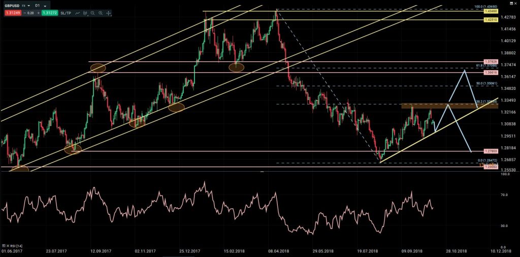 En el último informe comentamos que “desde una perspectiva de medio plazo el área comprendida entre 1.3310 y 1.3500 seguía siendo la ideal para abrir estrategias bajistas, a favor del dólar y contra la libra. El objetivo sería una vuelta a los mínimos en torno a 1.2650/1.2750”. El nivel 1.3300 se ha convertido en un punto crítico ahora. Mientras el precio se mantenga por debajo de esta zona, el escenario más probable es una vuelta a 1.2650-1.2750. Sin embargo, cierres por encima de 1.3300 extenderían el rebote más allá de lo inicialmente previsto, probablemente hacia 1.3650/1.3700. Esta semana puede haber noticias referentes a la negociación del Brexit por lo que no sería raro que haya más volatilidad de lo habitual en este par.
