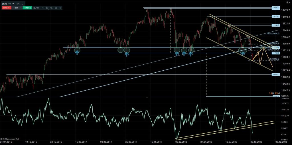 En el último informe comentamos “que considerábamos que había que mantener las posiciones alcistas con un primer objetivo en torno a 12250 y un segundo objetivo en 12800, pero con stops por debajo de 11700, ya que de romperse este nivel se completaría una formación de “hombro-cabeza-hombro” además de romperse la directriz alcista principal. Y que si finalmente se desarrollaba este último escenario esperábamos una caída rápida hacia 11420/60, posible “pullback” y cambio de tendencia, con un primer objetivo en 10800/30”. Finalmente se ha confirmado el escenario peor. El Dax ha completado dos cierres por debajo de 11700 y ha activado una estructura de vuelta que ha tardado en formarse más de dos años. En este momento los indicadores están sobrevendidos por lo que espero que en algún momento durante las siguientes sesiones se produzca un rebote. Sin embargo, ese rebote debería dejar un nuevo máximo decreciente, probablemente en el entorno del 38-50% de corrección de la última fase impulsiva bajista (11780-11925). Y a partir de ahí, es de esperar nuevas presiones a la baja con un primer objetivo en 10800 y un objetivo a medio/largo plazo en 9800/9900.