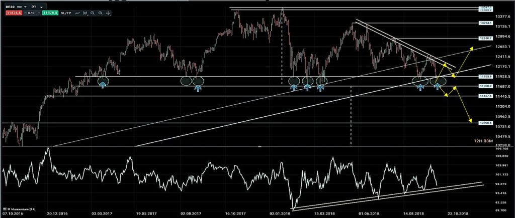 En el último informe comentamos “que manteníamos nuestra visión positiva a medio/largo plazo mientras que no se rompiese el soporte en torno a 11700. Y que habiendo alcanzado nuestro primer objetivo con el ataque a la directriz bajista (12400/450) recomendábamos cerrar parcialmente las posiciones largas en espera de algún tipo de corrección a la baja. Proponíamos la zona 12100/130, para retomar las posiciones largas con vistas a un potencial movimiento hacia 12800 a medio plazo.” Es evidente que la última caída está siendo más intensa de lo inicialmente previsto, aunque todavía no ha roto ningún nivel crítico que nos haga cambiar nuestra visión estructural. Por tanto, considero que debemos mantener las posiciones alcistas con un primer objetivo en torno a 12250 y un segundo objetivo en 12800, pero con stops por debajo de 11700, ya que de romperse este nivel se completaría una formación de “hombro-cabeza-hombro” además de romperse la directriz alcista principal. Si finalmente se desarrolla este último escenario negativo espero una caída rápida hacia 11420/60, posible “pullback” y cambio de tendencia, con un primer objetivo en 10800/30.