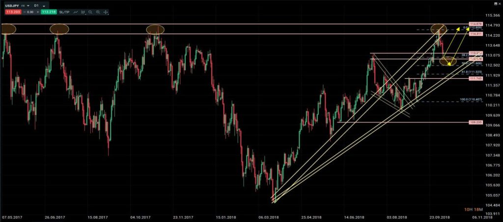 En el último informe comentamos que “aprovecharíamos la zona en torno a 113.00 para reducir posiciones largas en espera de una corrección. Y si dicha corrección alcanzaba 111.70/80 volvería a reponer las compras cerradas en 113.00 con la vista puesta en nuestro objetivo final en 114.30.” La corrección que se produjo una vez alcanzado nuestro primer objetivo en 113.00 duro apenas un día y no fue más allá de 112.55, por lo que no ofreció la oportunidad de recomprar las posiciones parciales cerradas en 113.00. A partir de ahí el precio vivió otro proceso impulsivo que llego hasta nuestro objetivo final en 114.30. Desde entonces hemos visto una caída significativa que ha alcanzado el 38.2% de Fibonacci y que coincide con los antiguos techos en torno a 113.00. Para los traders más agresivos estamos ya en una zona que se puede usar para abrir las primeras estrategias de compra de nuevo. Para los traders más conservadores esperaría a que la corrección se acerque a 111.60 antes de entrar. El stop lo situaría por debajo de 111.30 y el objetivo sería una vuelta a máximos 114.30/80.