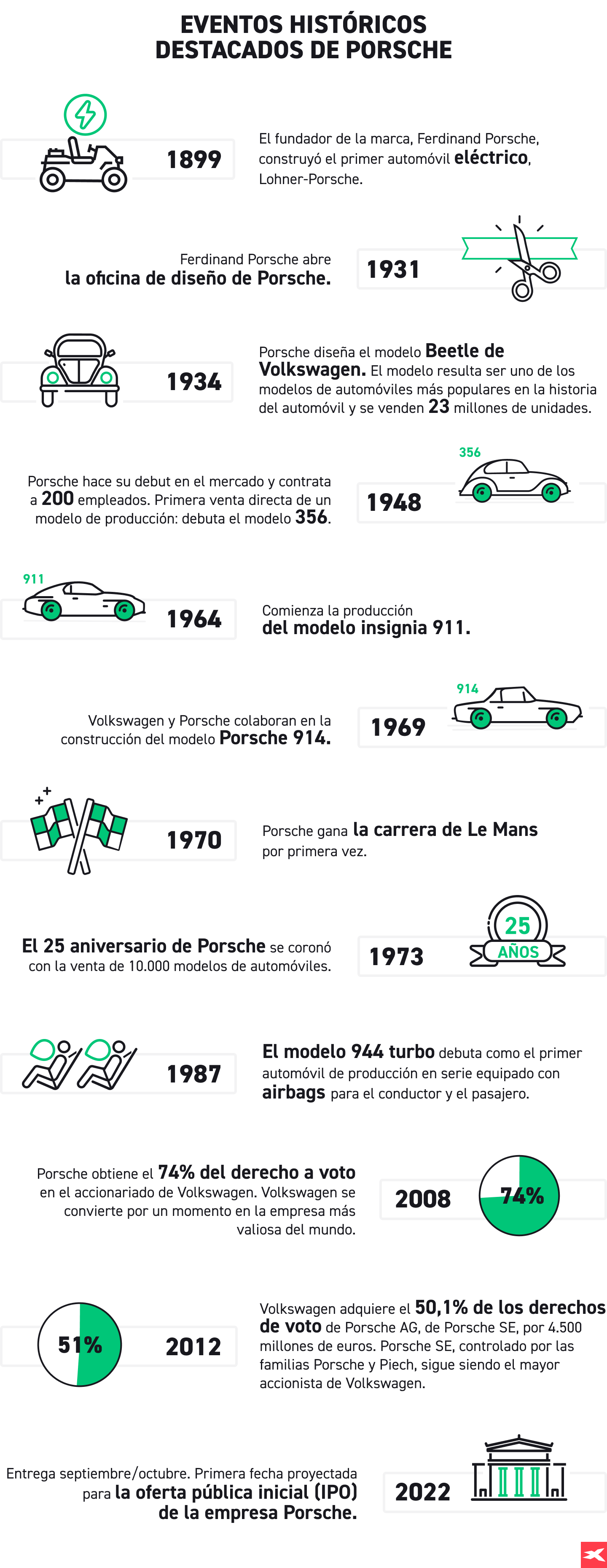 A continuación se muestra la infografía que muestra los aspectos más destacados de la historia de Porsche AG